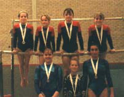 Stockport Gymnasts: Deborah Griffiths, Adele Pierce, Lisa Gichero, Cathy Healy