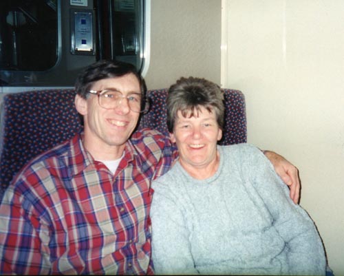 Brenda Smith and Pete Stanway on the train to the Isle of Man