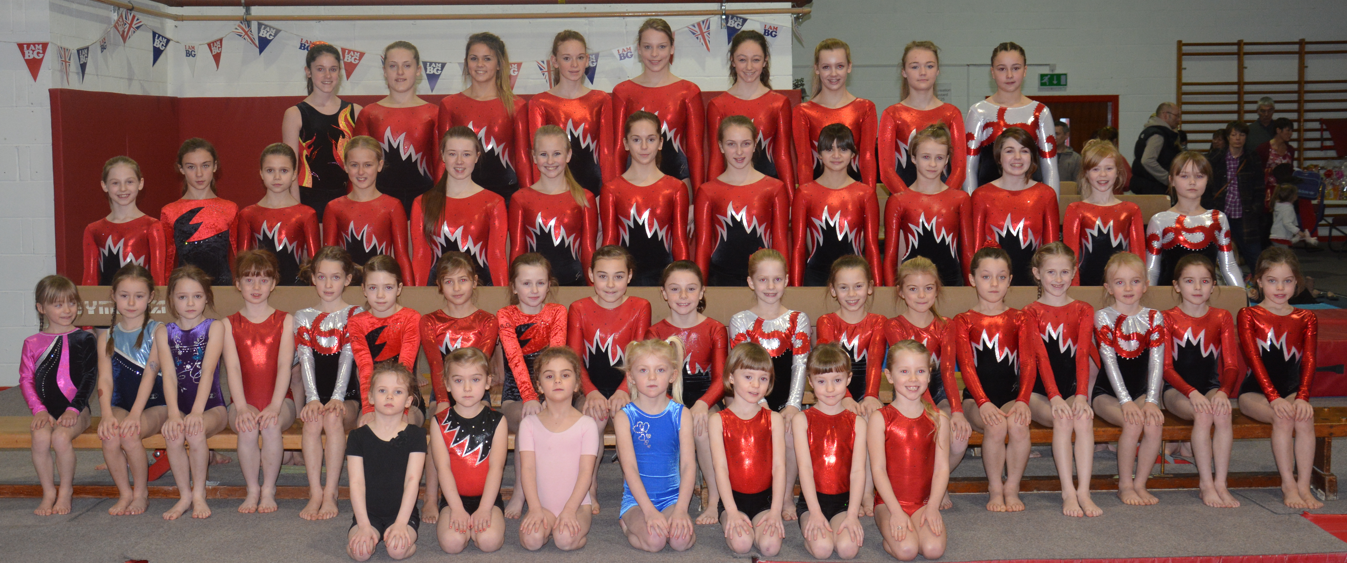 We always take the club photo this time of year; this year no exception, despite having a number of new gymnasts without club leotards and in the middle of changing to the new leotard. Not to worry; we’ll take another one around grades, with matching leotards.